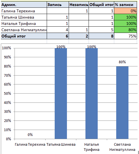 *** Для расчета бонуса мы просим клинику предоставить нам списки пришедших на прием новых пациентов за соответствующий срок. А мы сравним его со списком записавшихся на прием, кот.мы составляем на основе прослушивания звонков.