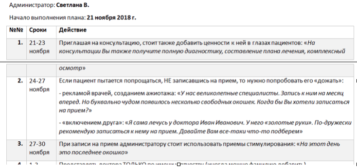 ЗАКРЕПЛЯЮЩИЕ индивидуальные мини-тренинги по телефону один на один для каждого админа клиники (5 шт. в месяц на всех администраторов) К каждым администратором мы ИНДИВИДУАЛЬНО будем прорабатывать полученные ими знания на основном тренинге + ответы на вопросы. Это будет в формате 5-минутного общения по телефону.