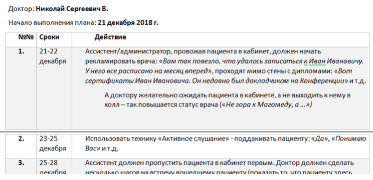 3.3 Плюс мы продолжаем анкетировать докторов. Чтобы убедиться, что они стали применять новые приемы и методы работы. А отчет об этом будет отправляться руководителю.
